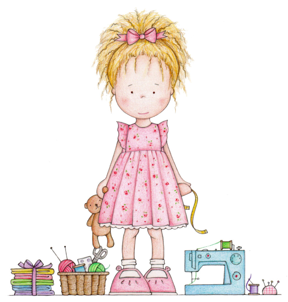 So here she is … Little Dolly Dot, a fabulous new addition to our dolly range. In this video I’ll be demonstrating my technique for attaching her gorgeous Mohair Weft to her head.